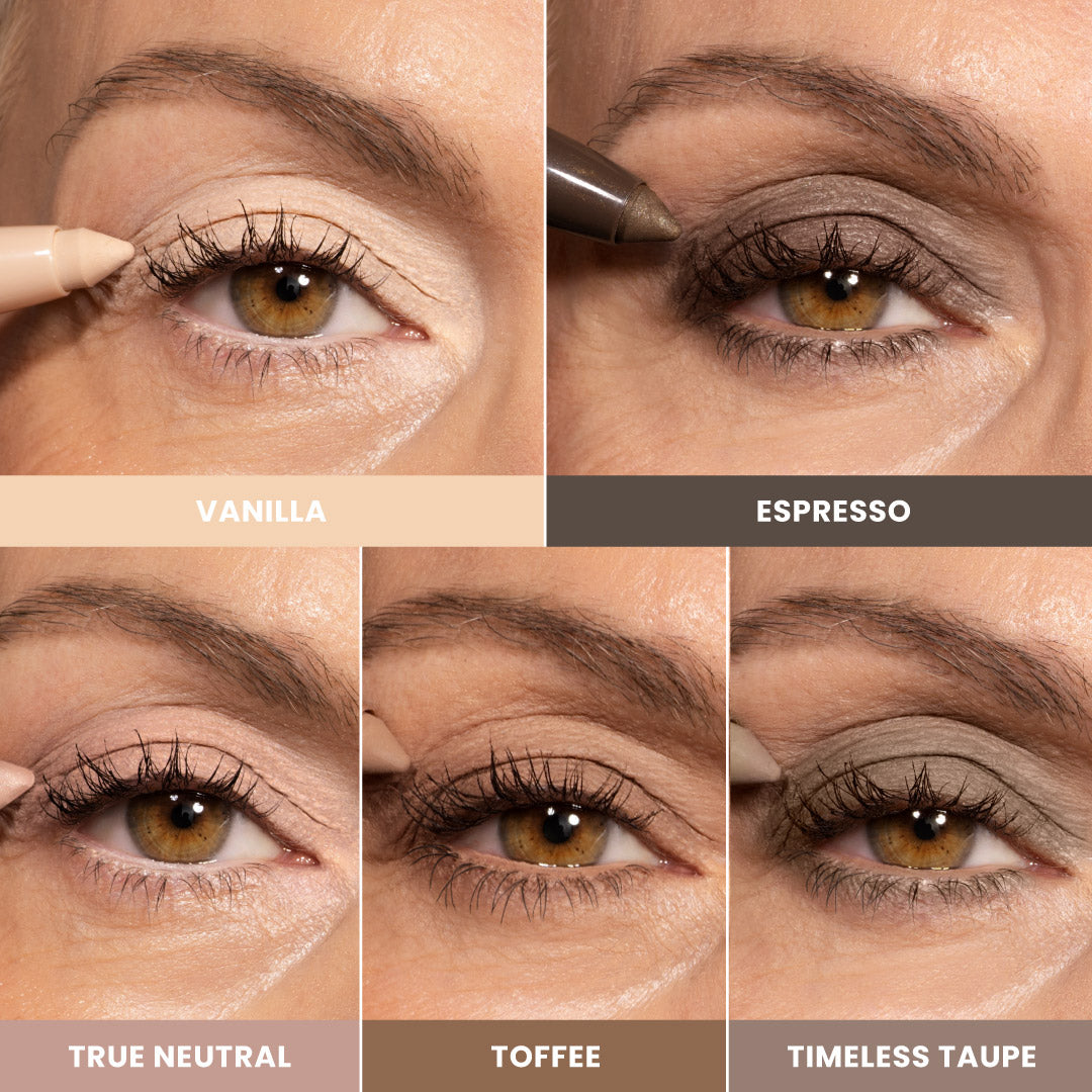 Versatile colors brighten & lift hooded eyes, shape & define mature peepers.