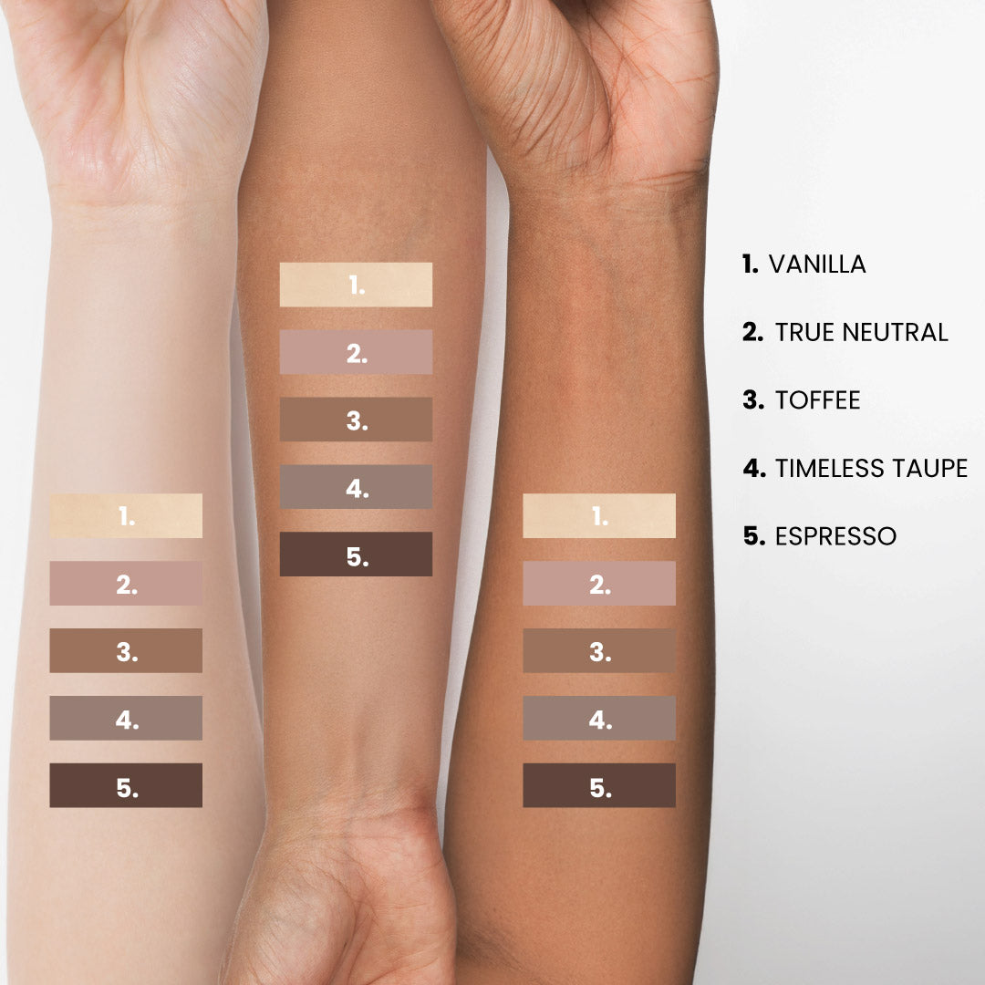 Use shades Vanilla & True Neutral to even out discoloration and brighten dull eyes.