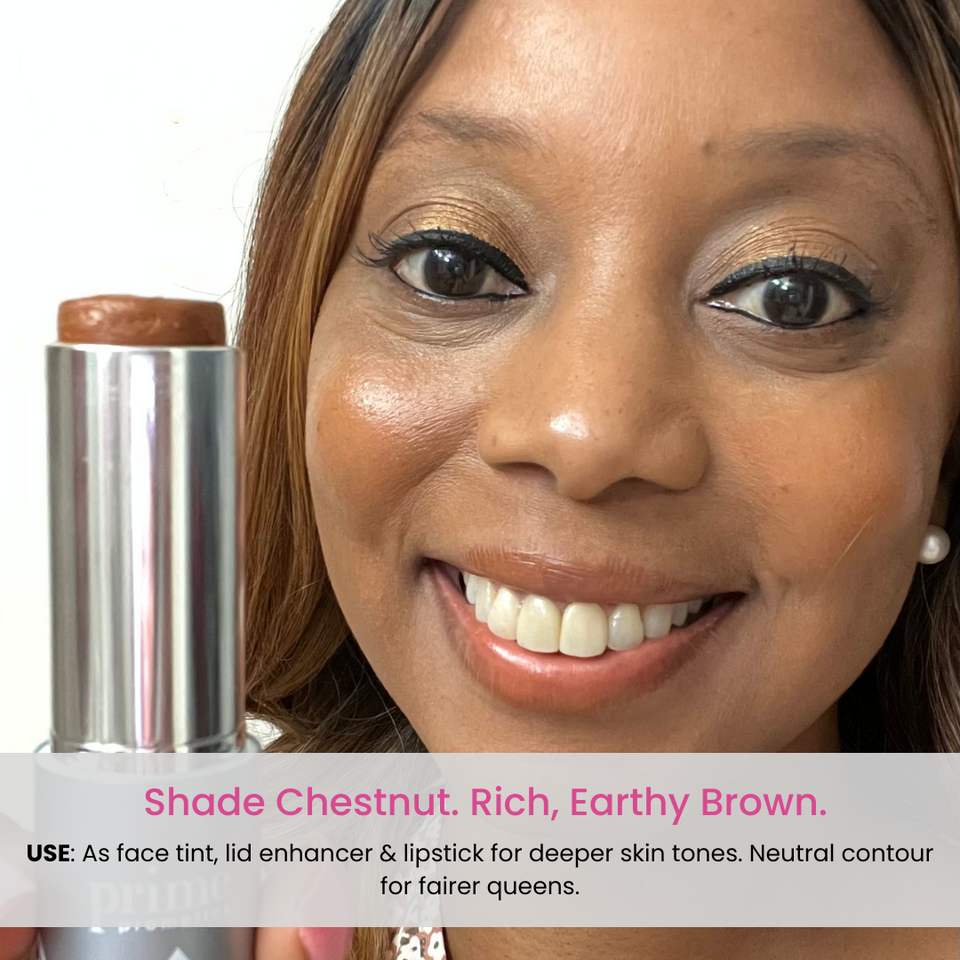 PrimeWands are 5-in-1 multitaskers. Use them as your face tint, lipstick, contour & blusher. Experiment. The sky's the limit for your glam. Some shades are exceptionally stunning on certain skin tones. While others are (more) universally flattering.