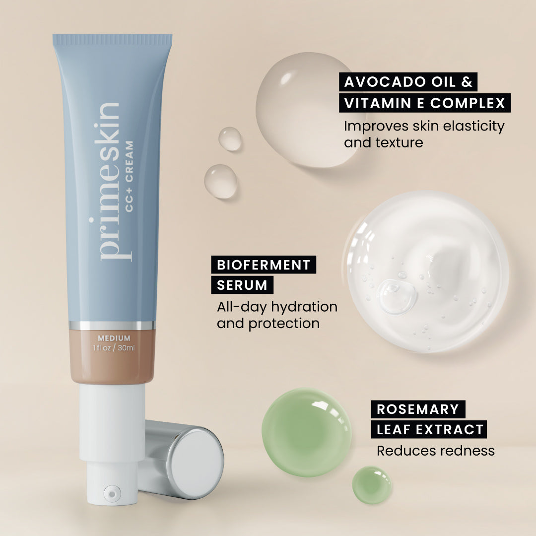 Always wear the PrimeSkin CC+ Cream with your favorite SPF or primer.