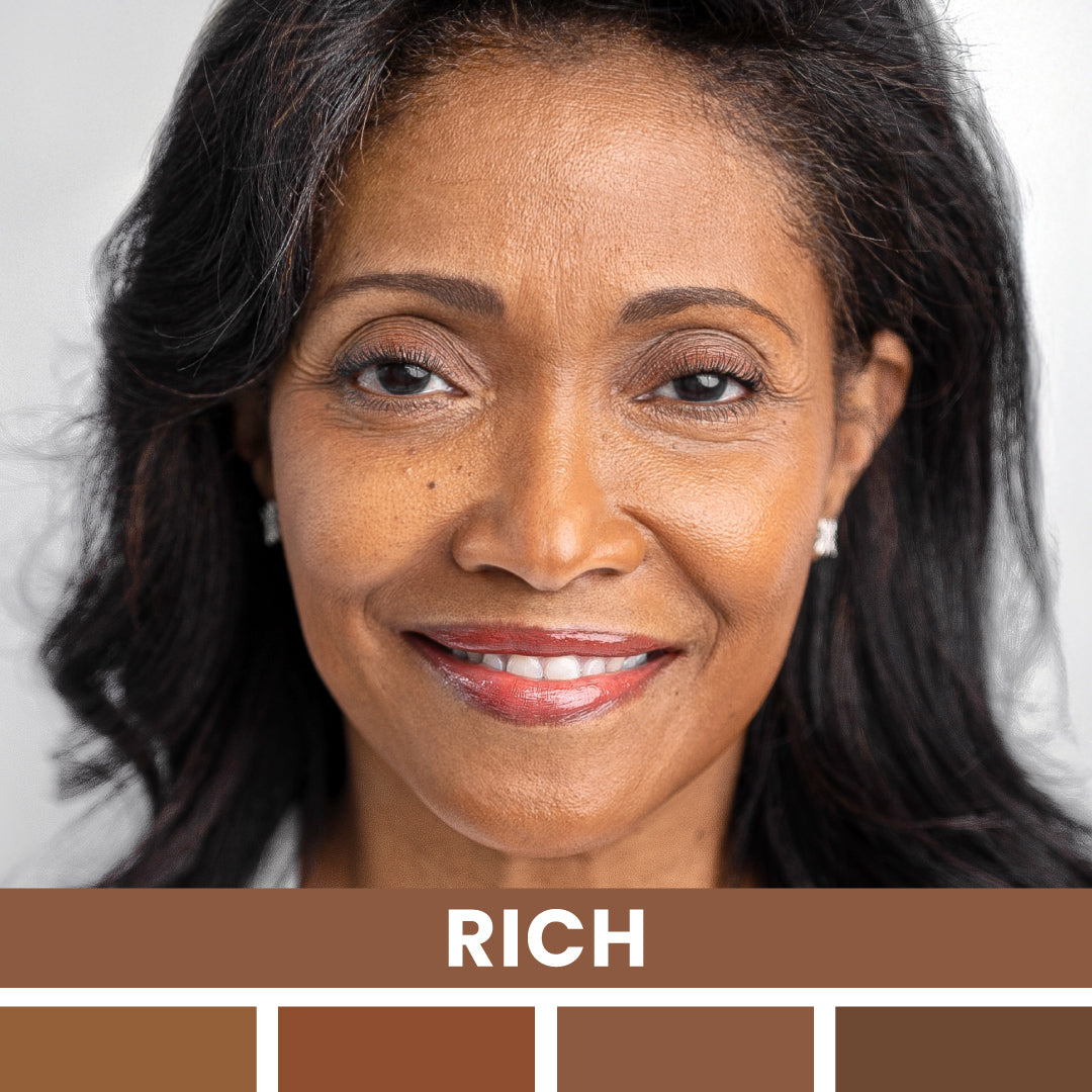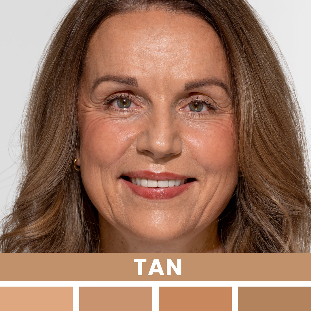 Shades map to the intensity of pigment/melanin in your skin. The eight hues are Fair, Ivory, Light, Medium, Golden Medium, Tan, Tan Rich, & Rich.