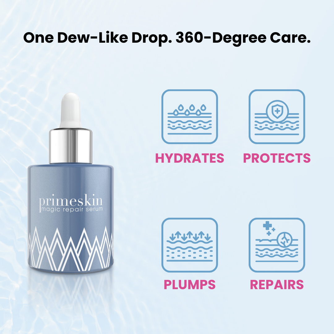 PrimeSkin Magic Repair Serum has a mix of 9 compatible hydrators, humectants, and emollients.
